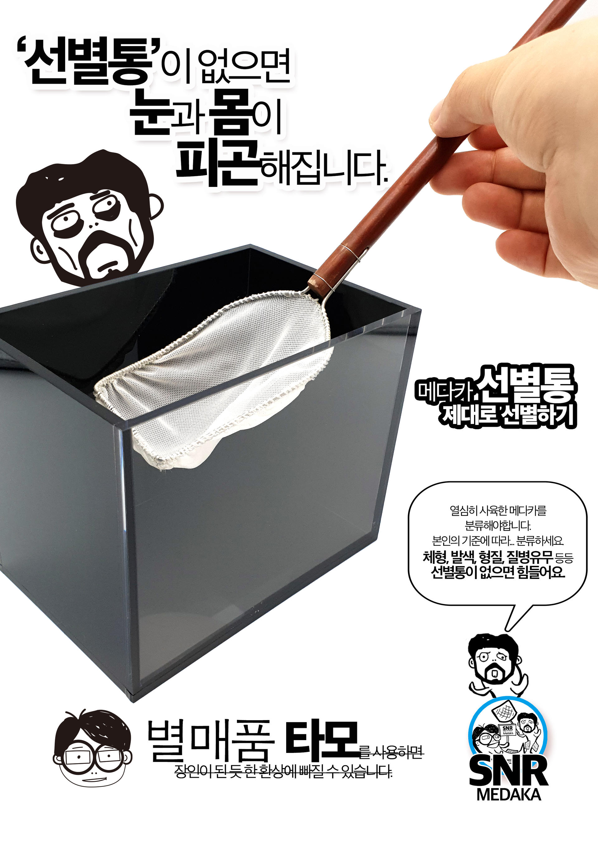 메다카 선별에 사용되는 선별통 입니다.